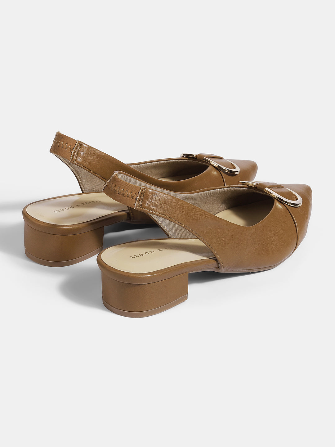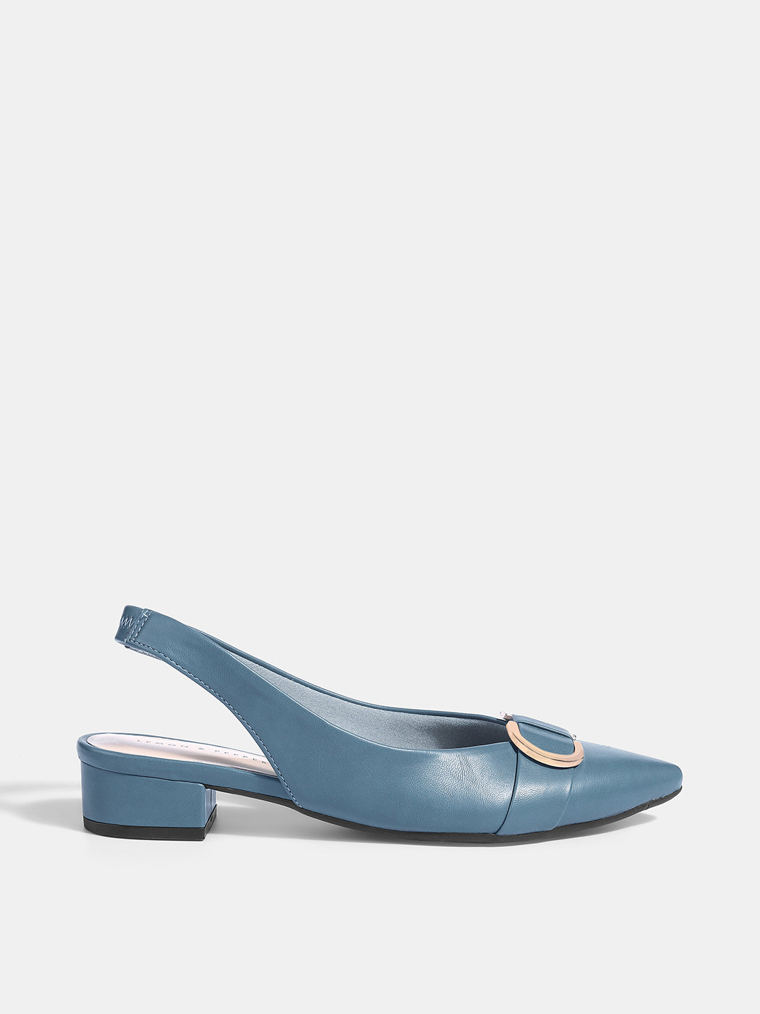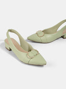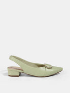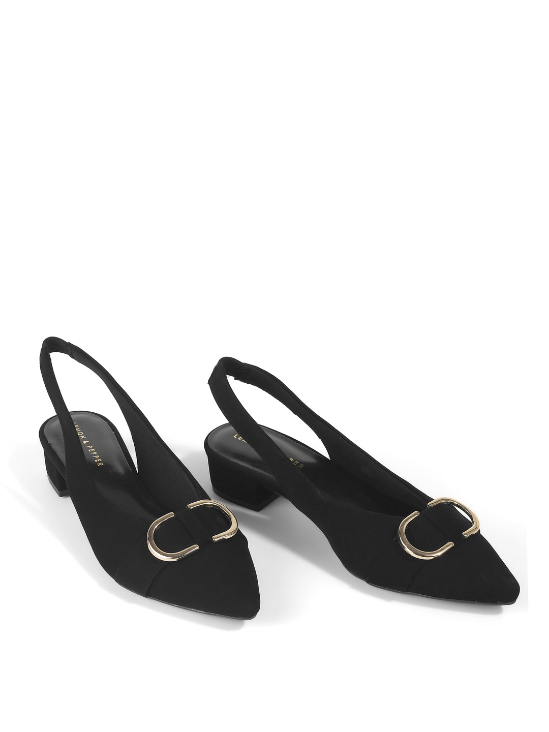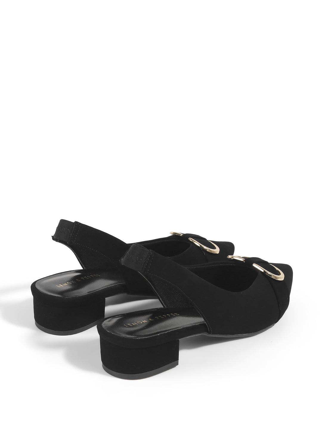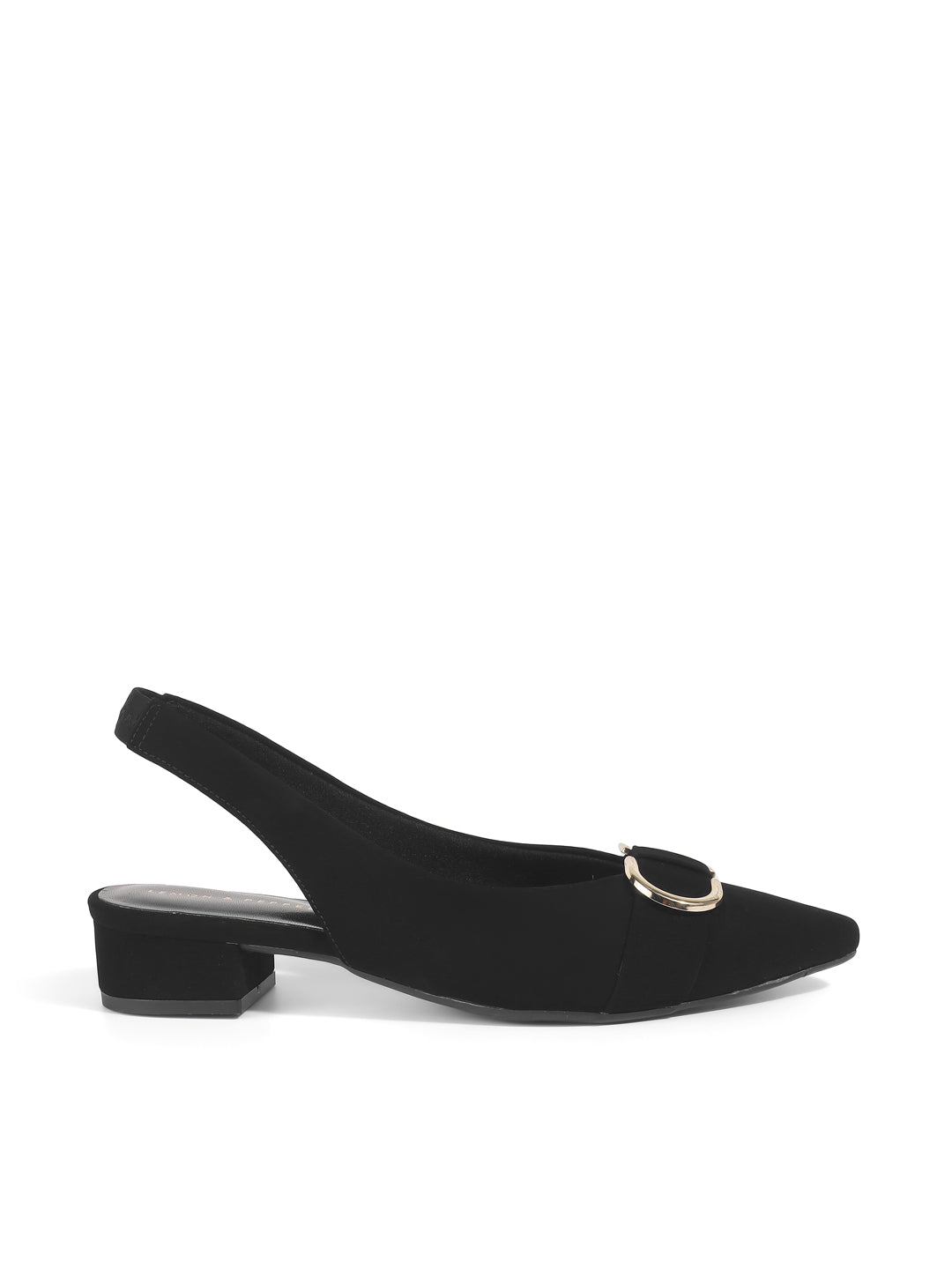 Elegant Suede Block Heel Slingback Sandals with Gold Buckle